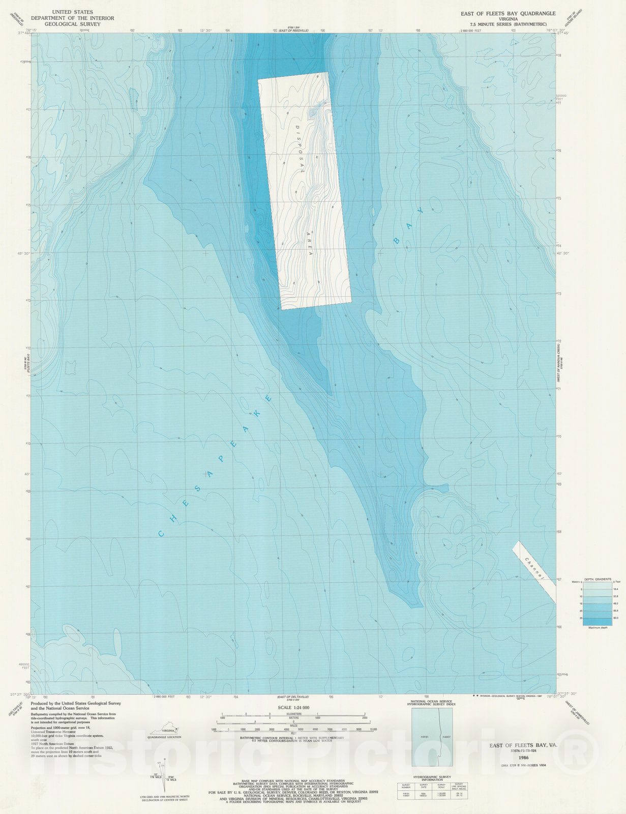 Historic Nautical Map - East Of Fleets Bay, VA, 1986 NOAA Topographic Bathymetric Historic Nautical Map - Vintage Wall Art