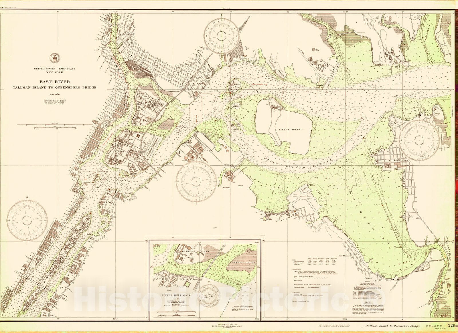 • .Historic Nautical Map - East River, 1935 NOAA Chart - Vintage Wall Art
