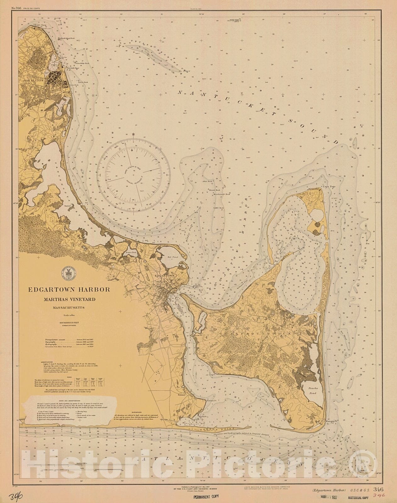 Historic Nautical Map - Edgartown Harbor Marthas Vineyard, 1927 NOAA Chart - Vintage Wall Art