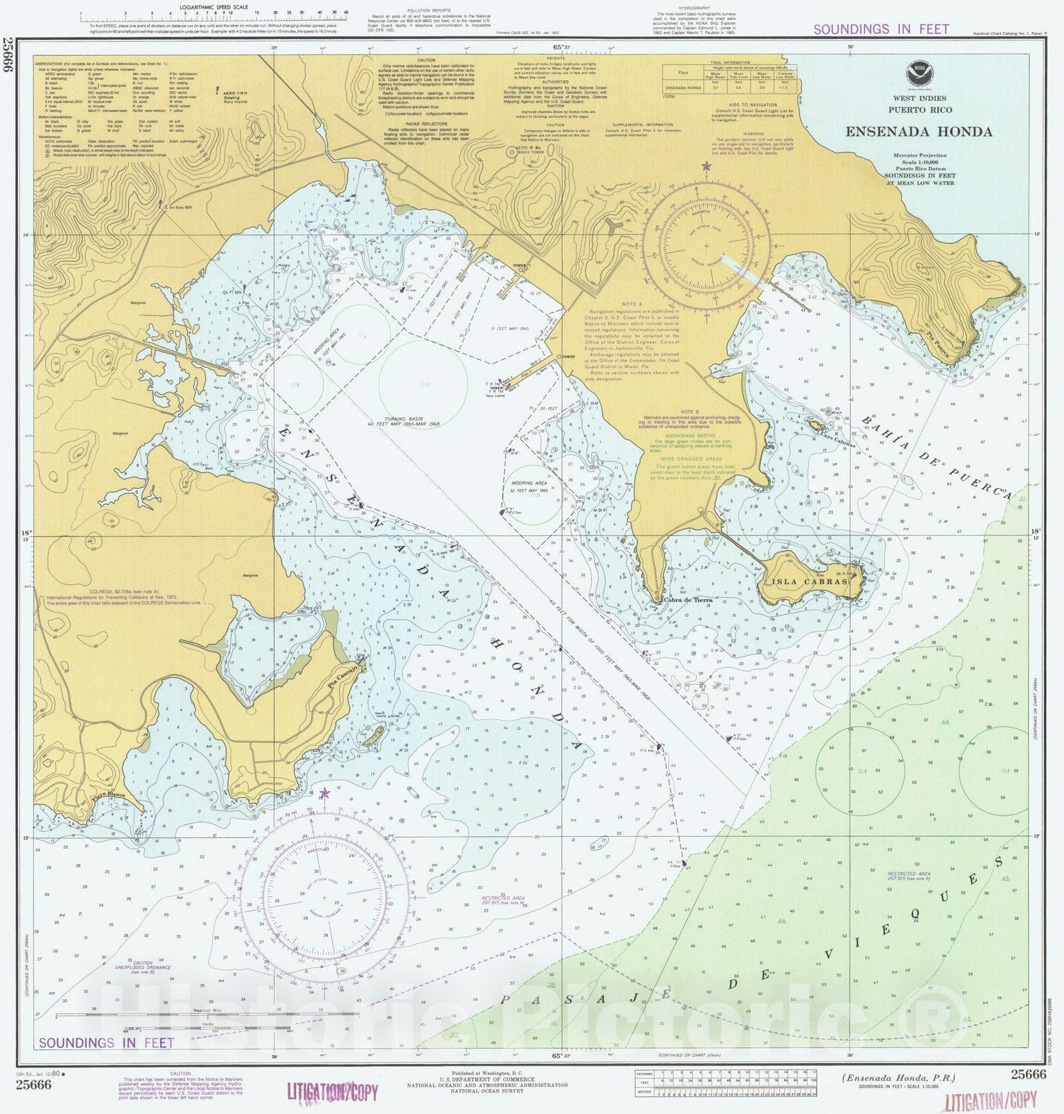 • .Historic Nautical Map - Ensenada Honda, PR, 1980 NOAA Chart - Vintage Wall Art
