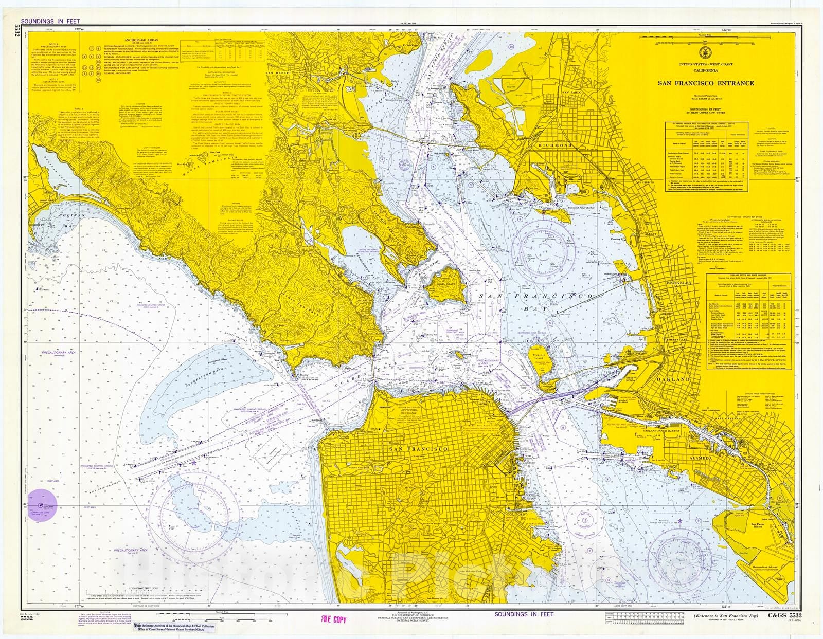 Historic Nautical Map - Entrance To San Francisco Bay, 1973 NOAA Chart - California (CA) - Vintage Wall Art