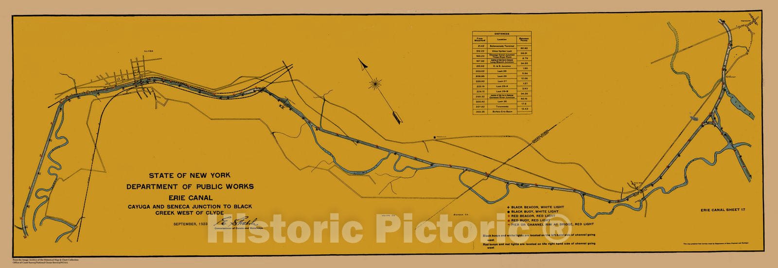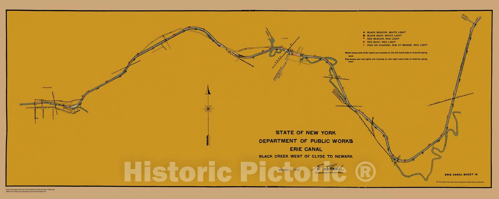 Historic Nautical Map - Map Of Erie Canal From Black Creek West Of Clyde To Newark Sheet 18, NY, 1923 NOAA Chart - Vintage Wall Art