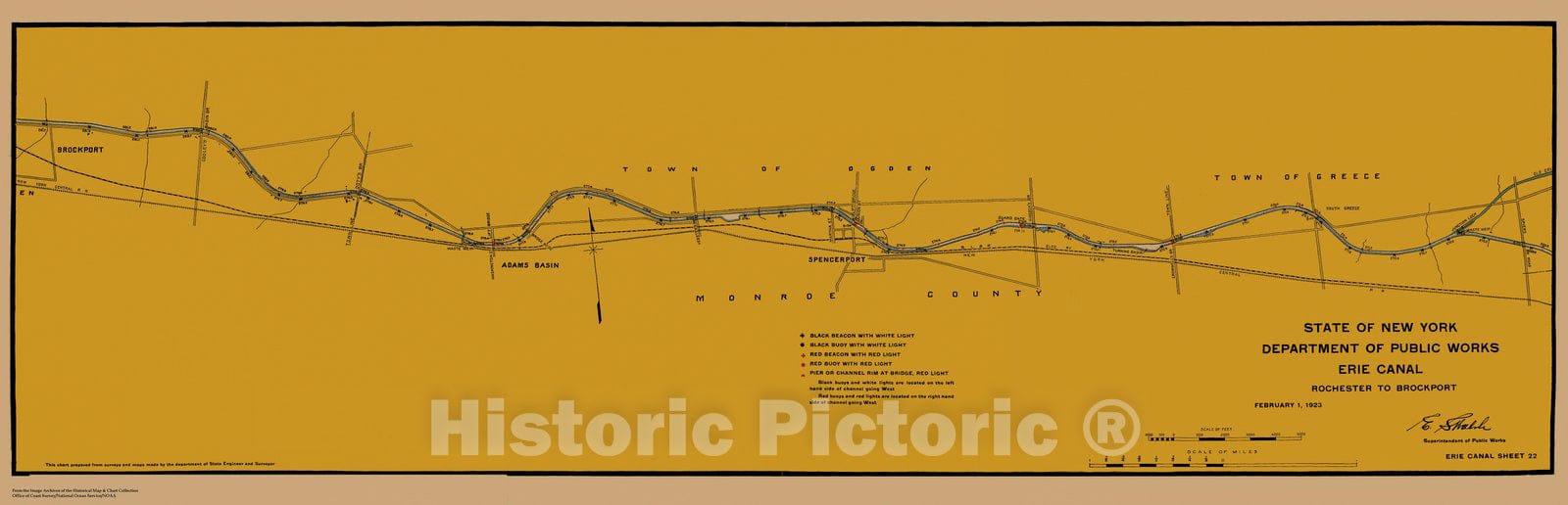 Historic Nautical Map - Map Of Erie Canal From Rochester To Brockport Sheet 22, NY, 1923 NOAA Chart - Vintage Wall Art