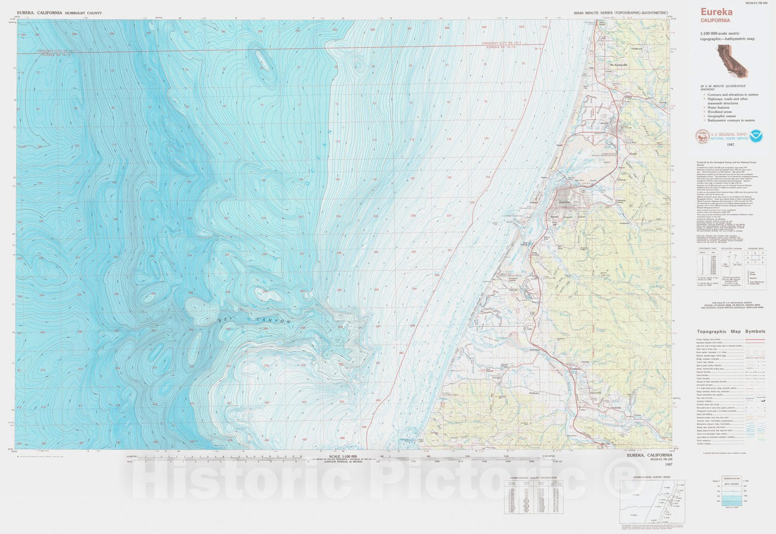 • Historic Nautical Map - Eureka, CA, 1987 NOAA Topographic Bathymetric Historic Nautical Map - Vintage Wall Art