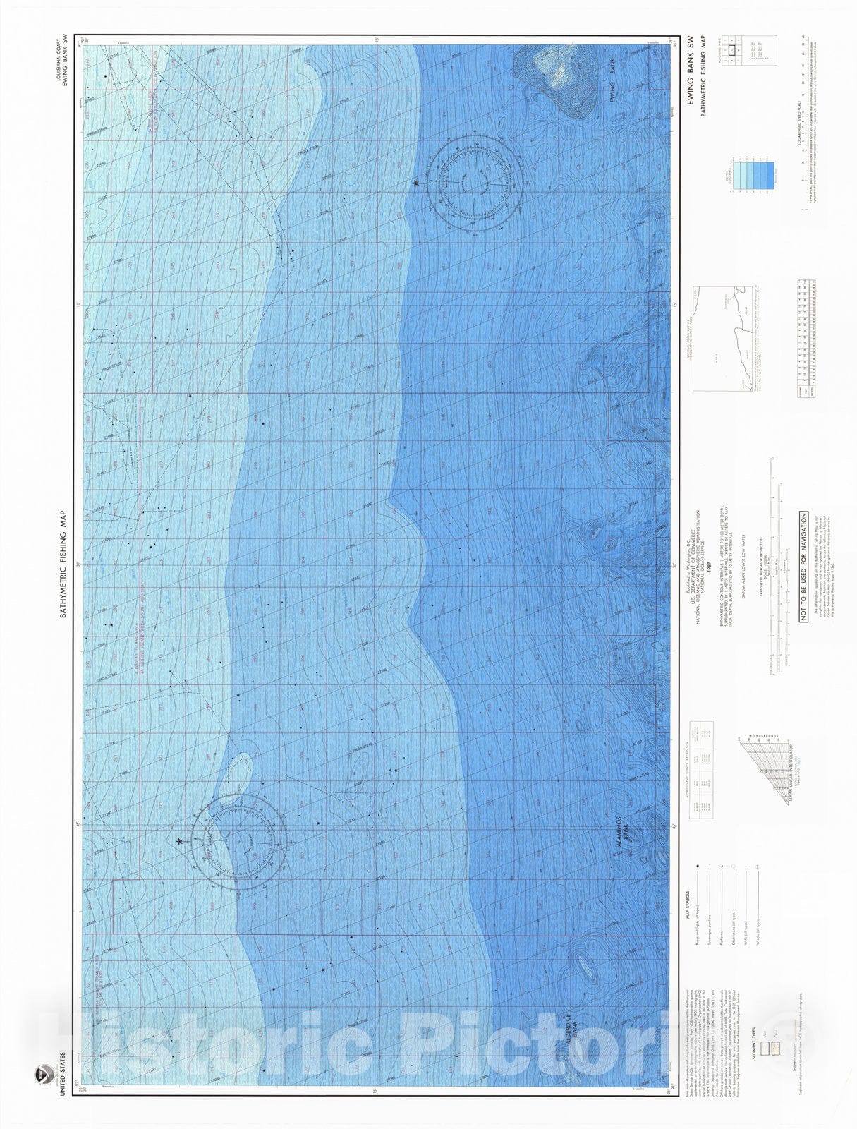 • .Historic Nautical Map - Ewing Bank S.W, USA, 1987 NOAA Bathymetric Map-Fishing - Vintage Wall Art