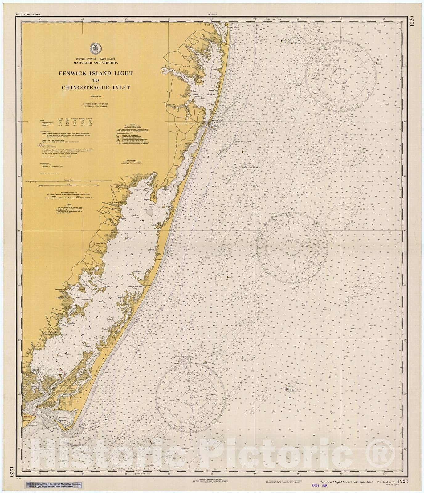 Historic Nautical Map - Fenwick I. Light To Chincoteague Inlet, 1935 NOAA Chart - Maryland (MD) - Vintage Wall Art