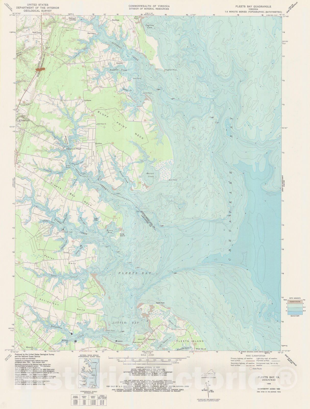 Historic Nautical Map - Fleets Bay, VA, 1968 NOAA Topographic Bathymetric Historic Nautical Map - Vintage Wall Art