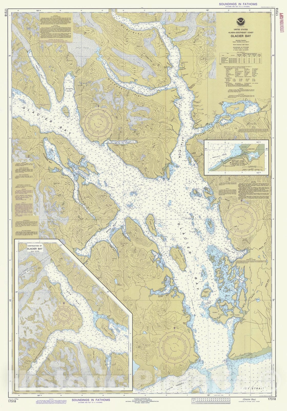 Historic Nautical Map - Glacier Bay, AK, 1980 NOAA Chart - Vintage Wall Art