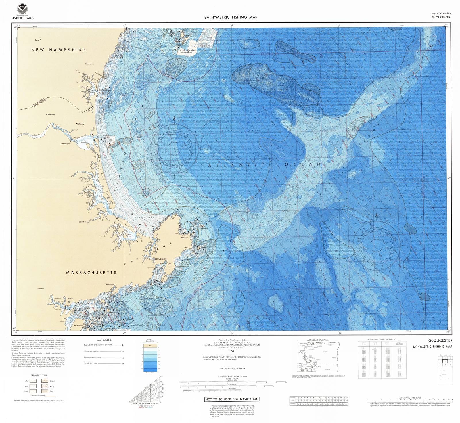 Historic Nautical Map - Gloucester, MA, NH, 1986 NOAA Bathymetric Map-Fishing - Vintage Wall Art