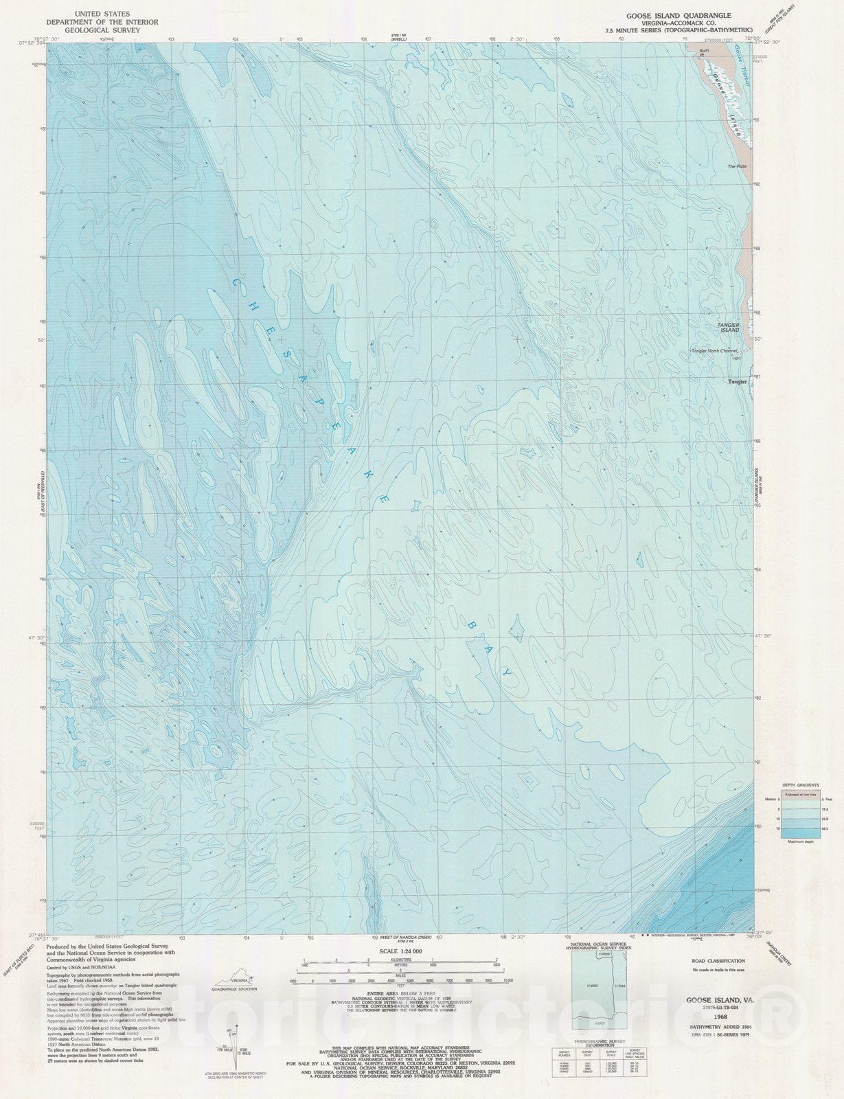 Historic Nautical Map - Goose Island, VA, 1968 NOAA Topographic Bathymetric Historic Nautical Map - Vintage Wall Art