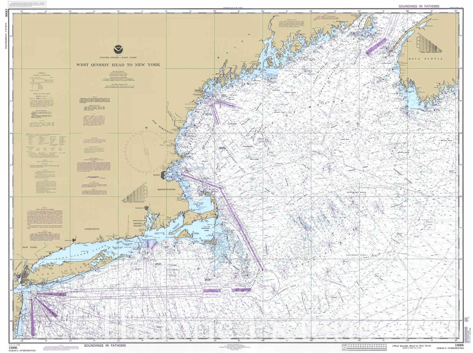 Historical West Quoddy Head To New York | 30in x 22in 1997 Nautical Chart | ME, NY, RI, NH, CT, NJ, MA Vintage Map | Fine Art Reproduction Print