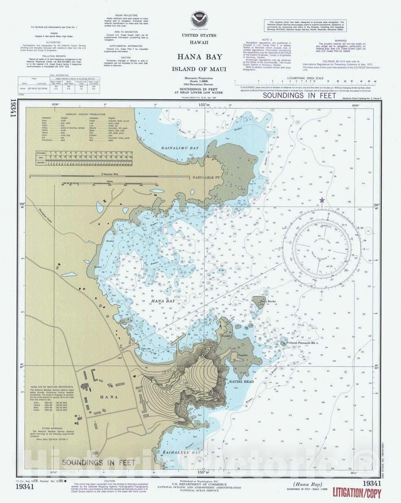 Historic Nautical Map - Hana Bay, HI, 1986 NOAA Chart - Vintage Wall Art