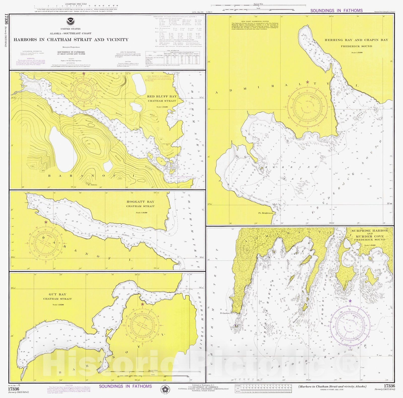 Historic Nautical Map - Harbors In Chatham Strait And Vicinity Alaska, AK, 1975 NOAA Chart - Vintage Wall Art