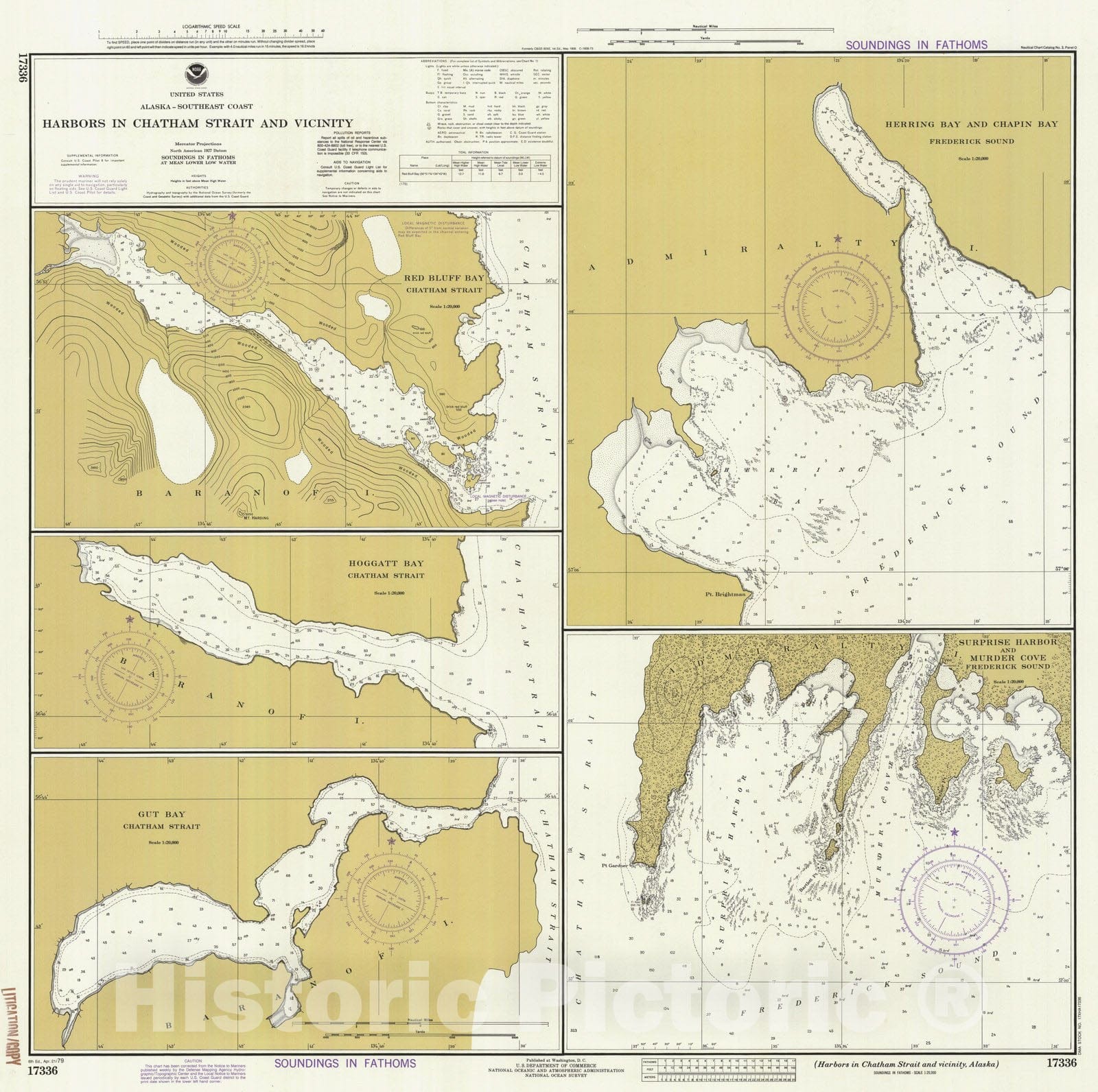 Historic Nautical Map - Harbors In Chatham Strait And Vicinity Alaska, AK, 1979 NOAA Chart - Vintage Wall Art
