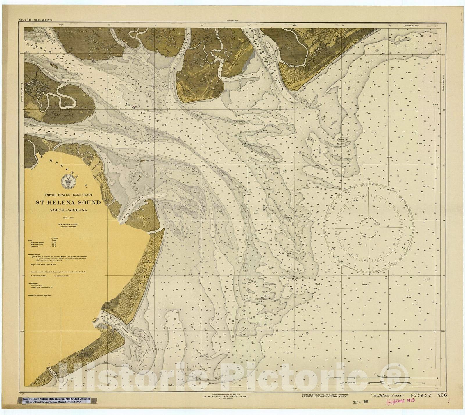 Historic Nautical Map - St. Helena Sound, 1931 NOAA Chart - South Carolina (SC) - Vintage Wall Art