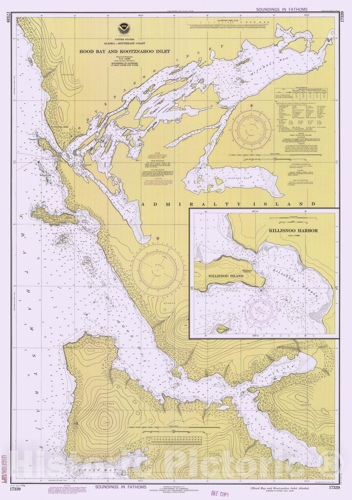 Historic Nautical Map - Hood Bay Kootznahoo Inlet Alaska, AK, 1979 NOAA Chart - Vintage Wall Art