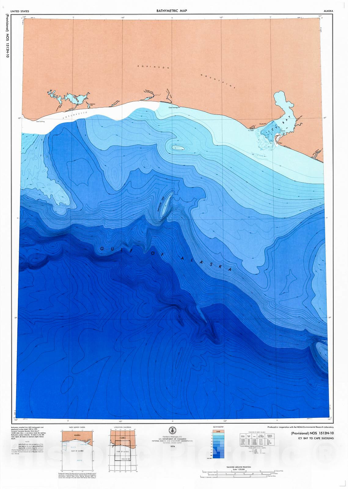 Historic Nautical Map - Icy Bay To Cape Suckling, 1974 NOAA Bathymetric Historic Nautical Map - Alaska (AK) - Vintage Wall Art