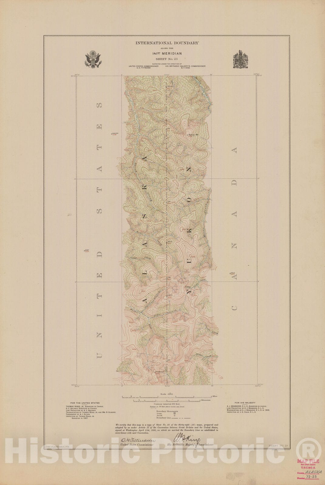 Historic Nautical Map - International Boundary, Along The 141St Meridian, Sheet No. 23, AK, 1914 NOAA Topographic - Vintage Wall Art