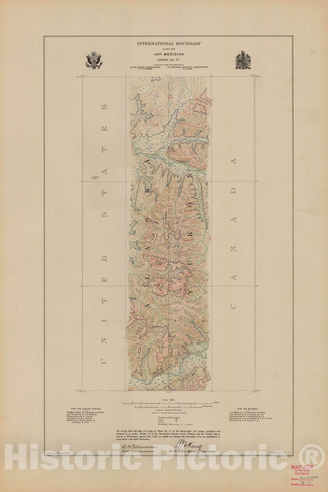 Historic Nautical Map - International Boundary, Along The 141St Meridian, Sheet No. 17, AK, 1914 NOAA Topographic - Vintage Wall Art