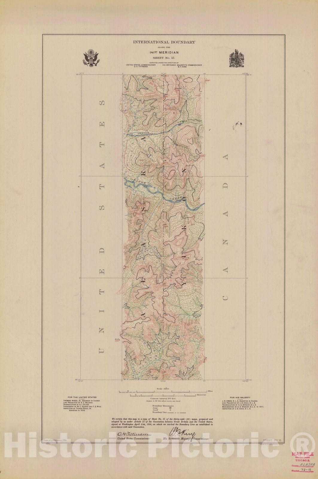Historic Nautical Map - International Boundary, Along The 141St Meridian, Sheet No. 15, AK, 1914 NOAA Topographic - Vintage Wall Art