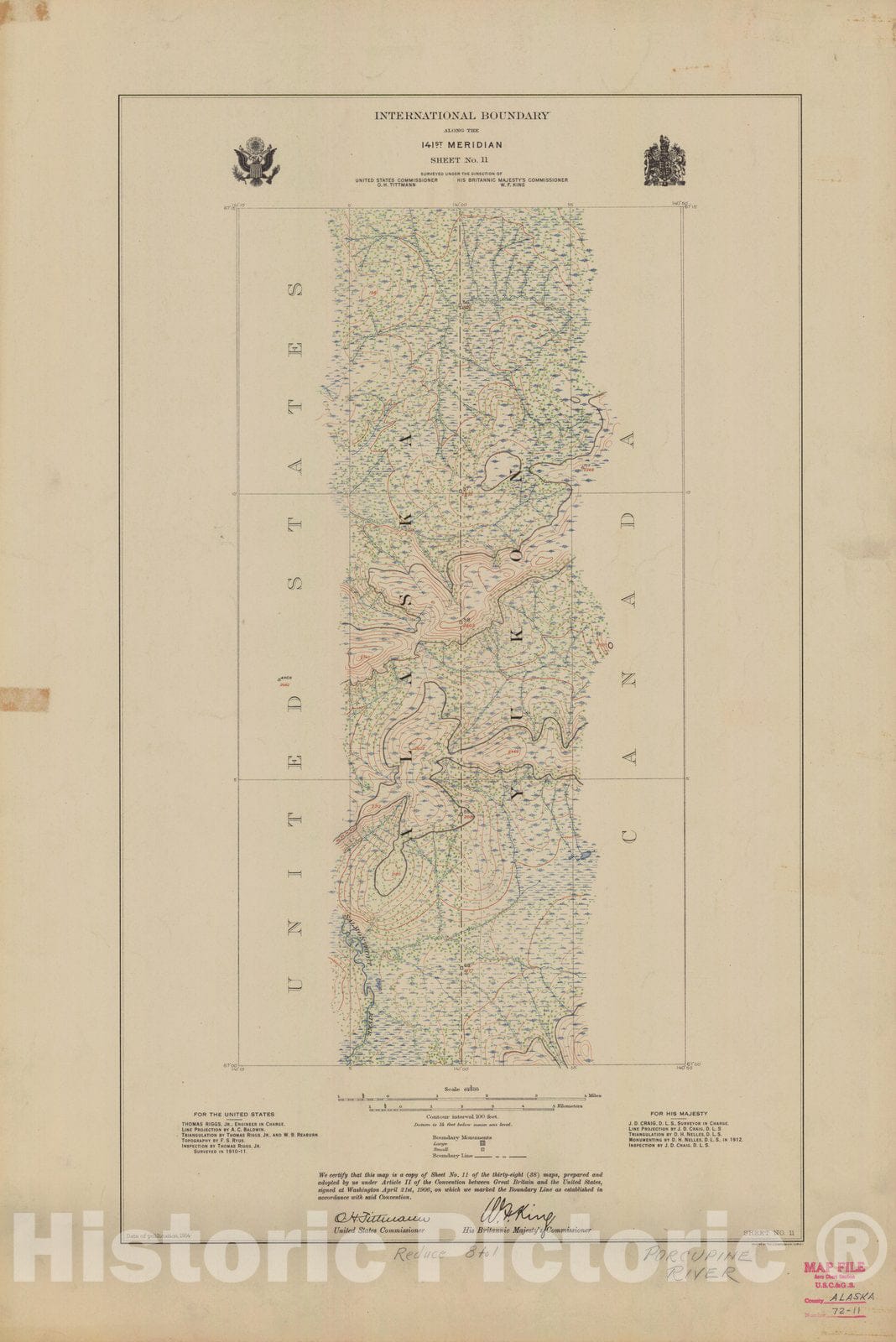 Historic Nautical Map - International Boundary, Along The 141St Meridian, Sheet No. 11, AK, 1914 NOAA Topographic - Vintage Wall Art