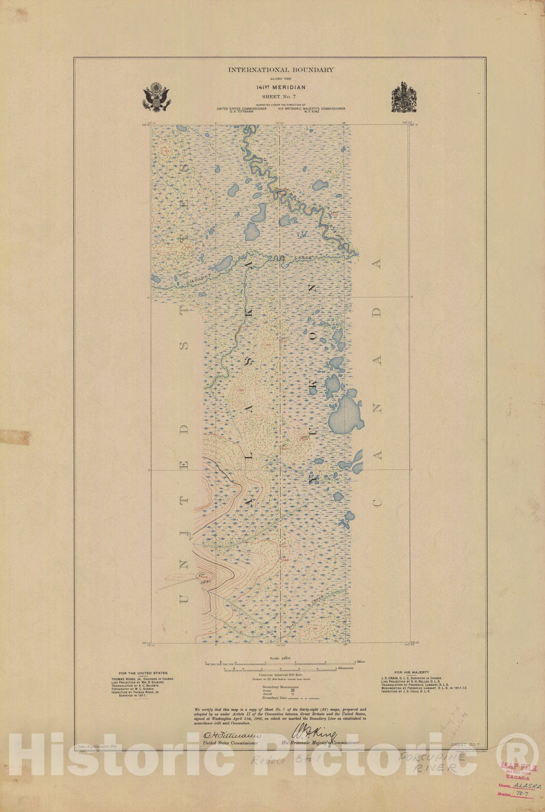 Historic Nautical Map - International Boundary, Along The 141St Meridian, Sheet No. 7, AK, 1914 NOAA Topographic - Vintage Wall Art