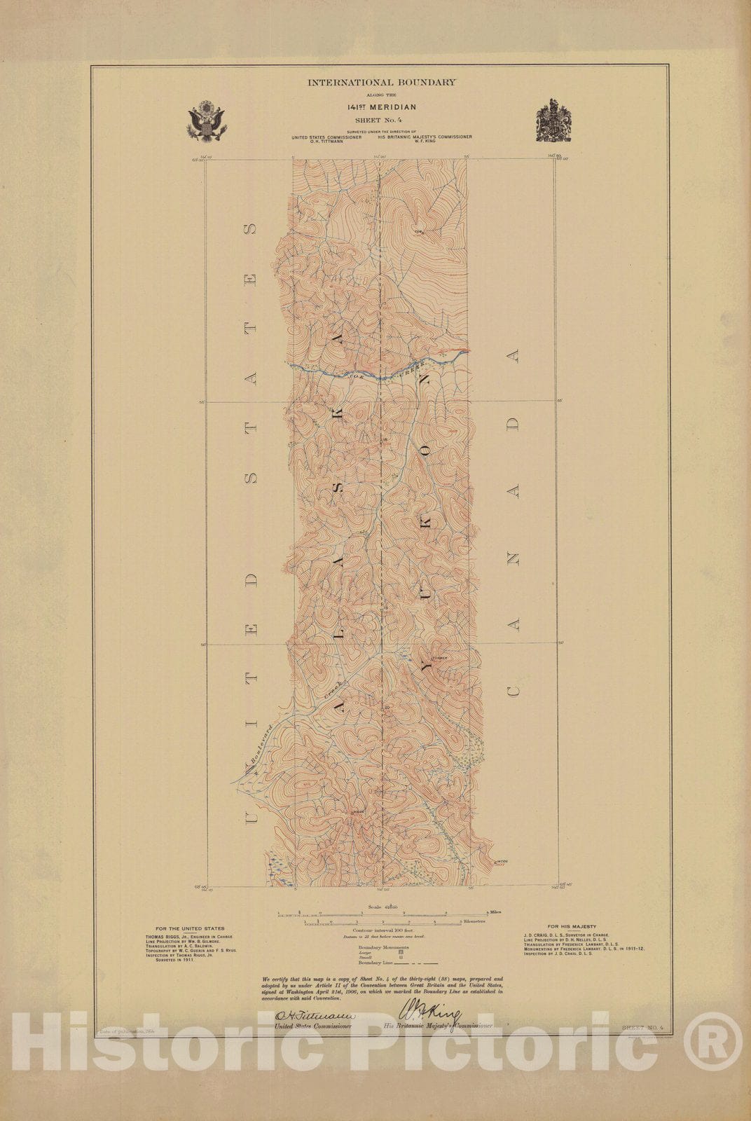 Historic Nautical Map - International Boundary, Along The 141St Meridian, Sheet No. 4, AK, 1914 NOAA Topographic - Vintage Wall Art