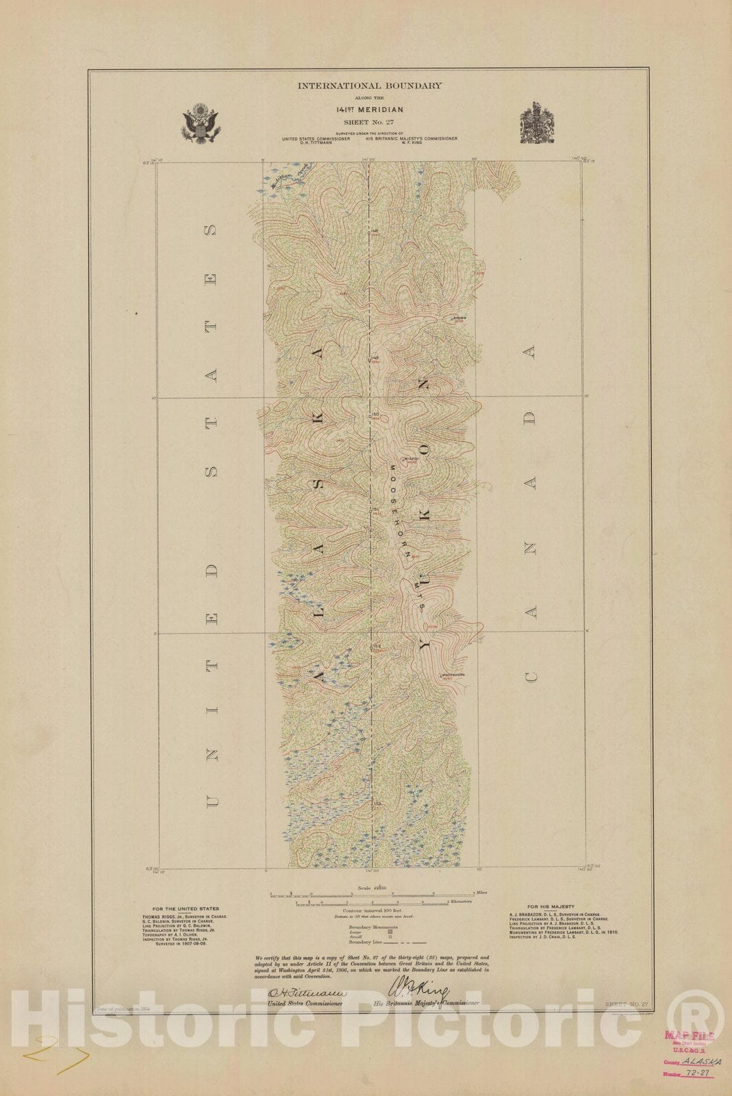 Historic Nautical Map - International Boundary, Along The 141St Meridian, Sheet No.27, AK, 1914 NOAA Topographic - Vintage Wall Art