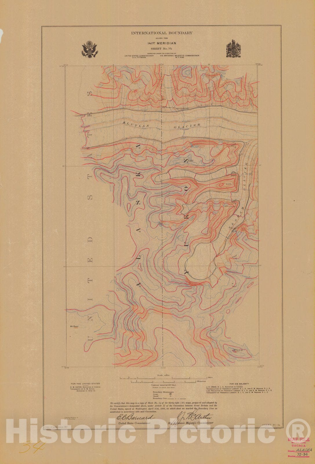 Historic Nautical Map - International Boundary, Along The 141St Meridian, Sheet No.34, AK, 1917 NOAA Topographic - Vintage Wall Art