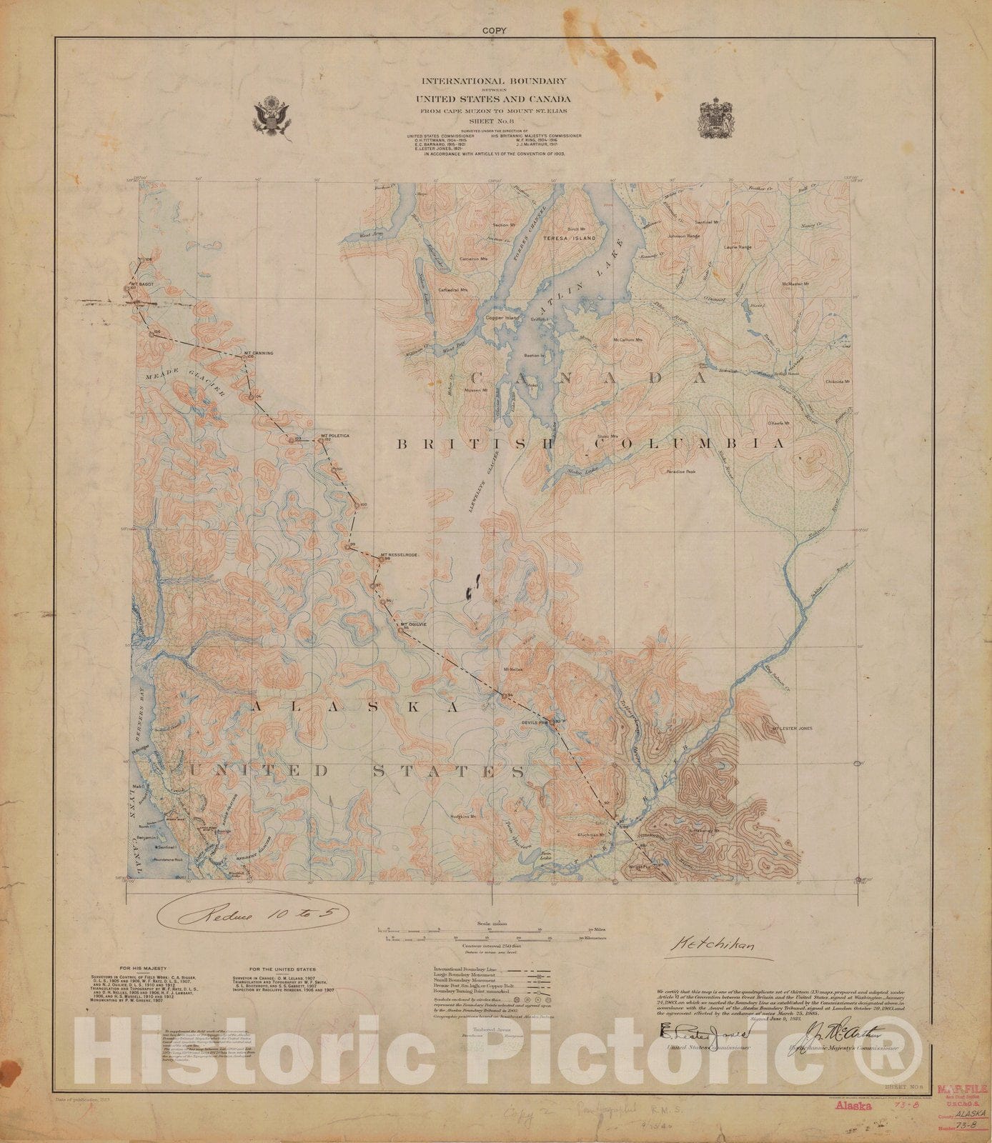 Historic Nautical Map - International Boundary, From Cape Muzon To Mount St. Elians, Sheet No.8, AK, 1923 NOAA Topographic - Vintage Wall Art
