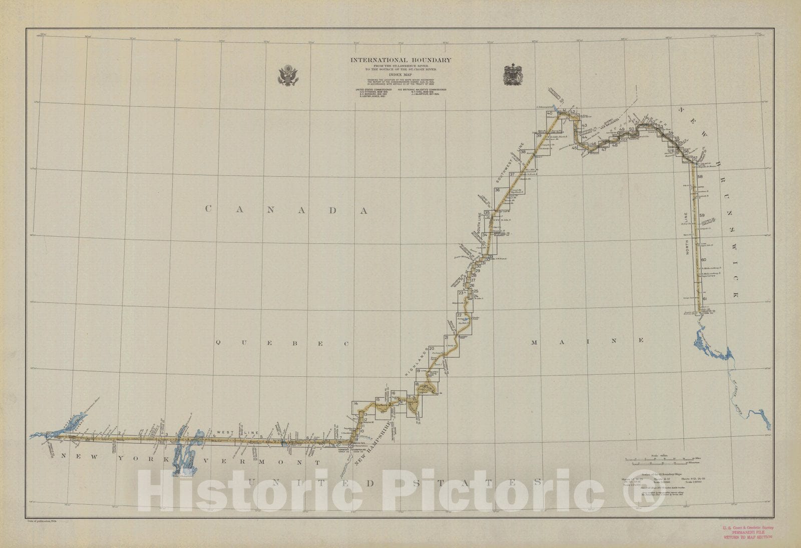 Historic Nautical Map - International Boundary, From The St. Lawrence River To The Source Of The St. Croix River, Index Map, ME, 1924 NOAA Topographic - Vintage Wall Art