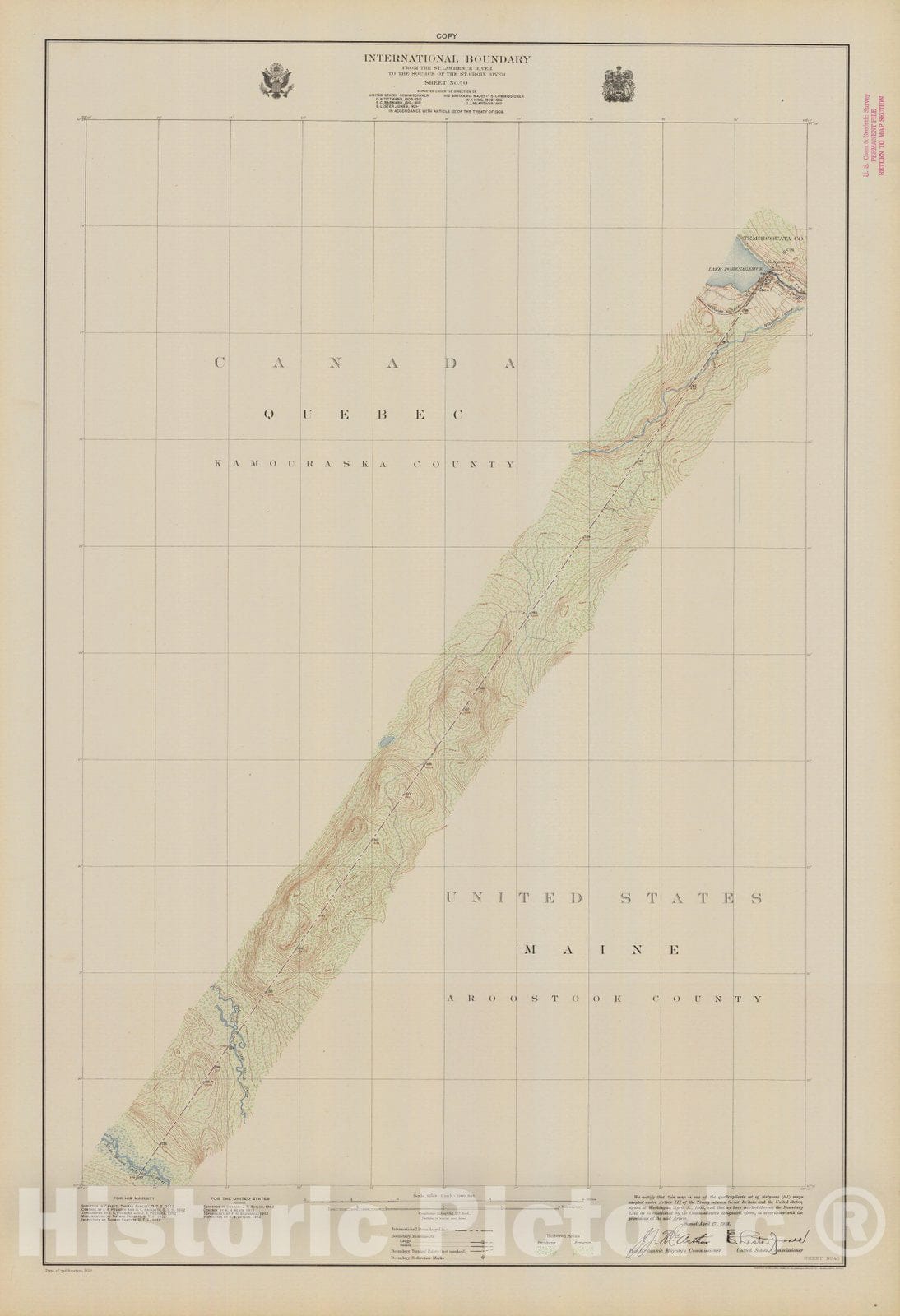 Historic Nautical Map - International Boundary, From The St. Lawrence River To The Source Of The St. Croix River, Sheet No. 40, ME, 1923 NOAA Topographic - Vintage Wall Art
