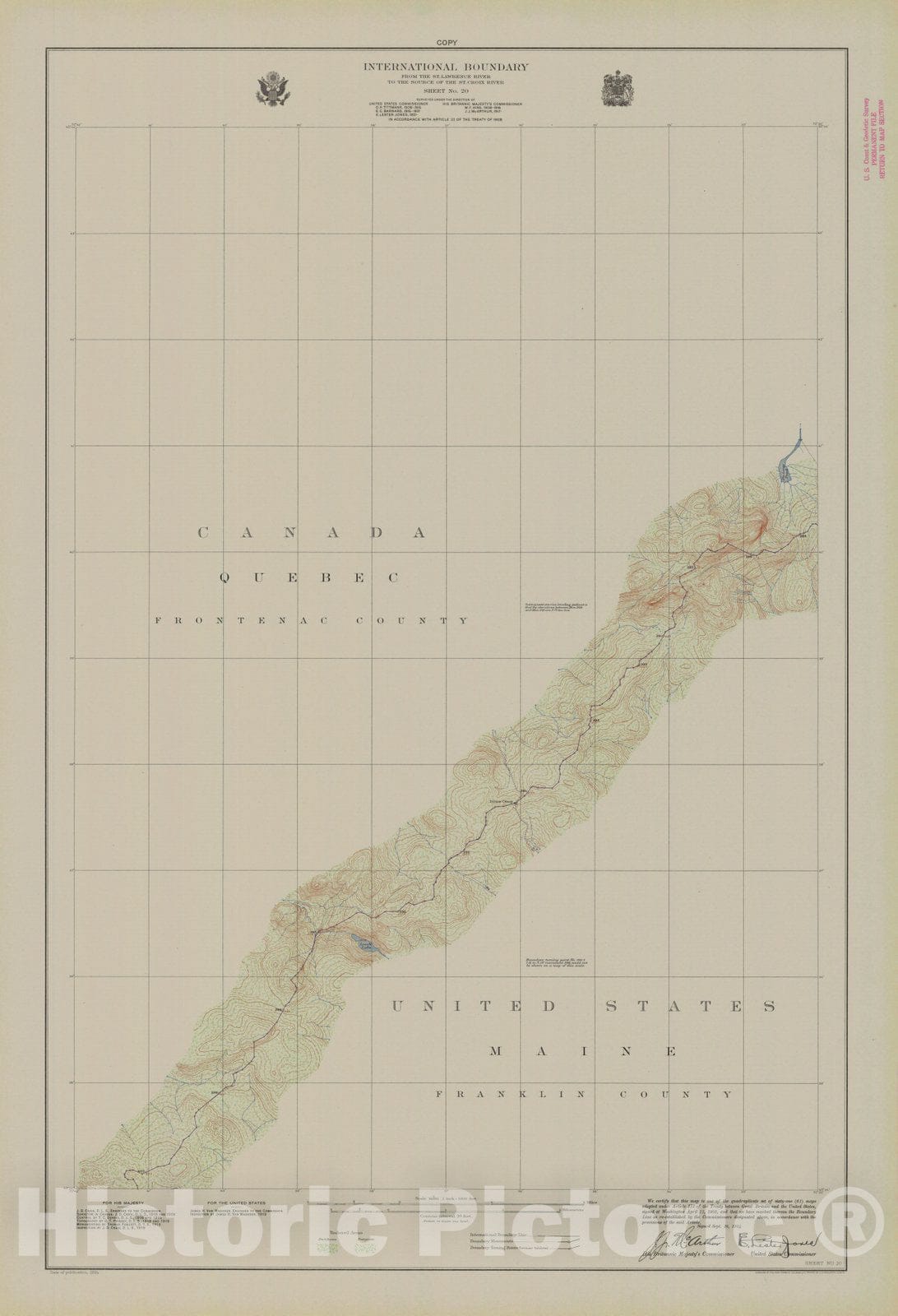 Historic Nautical Map - International Boundary, From The St. Lawrence River To The Source Of The St. Croix River, Sheet No. 20, ME, 1924 NOAA Topographic - Vintage Wall Art