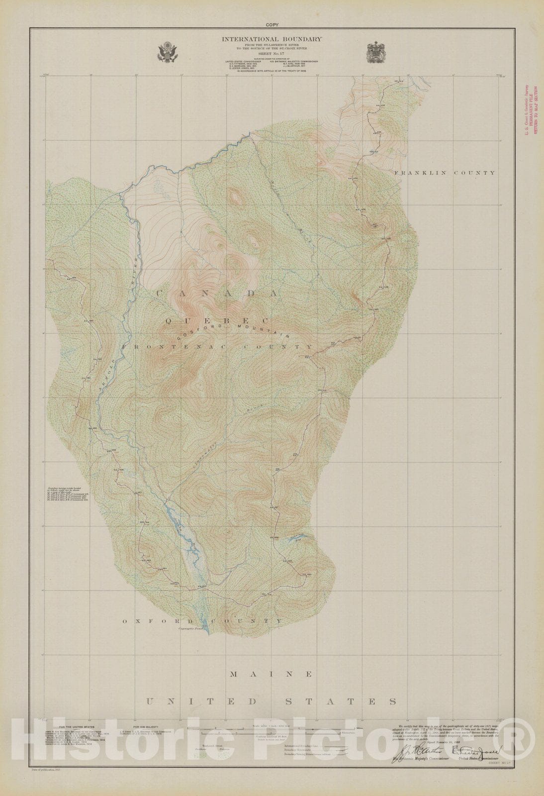 Historic Nautical Map - International Boundary, From The St. Lawrence River To The Source Of The St Croix River Sheet No. 17, ME, 1923 NOAA Topographic - Vintage Wall Art