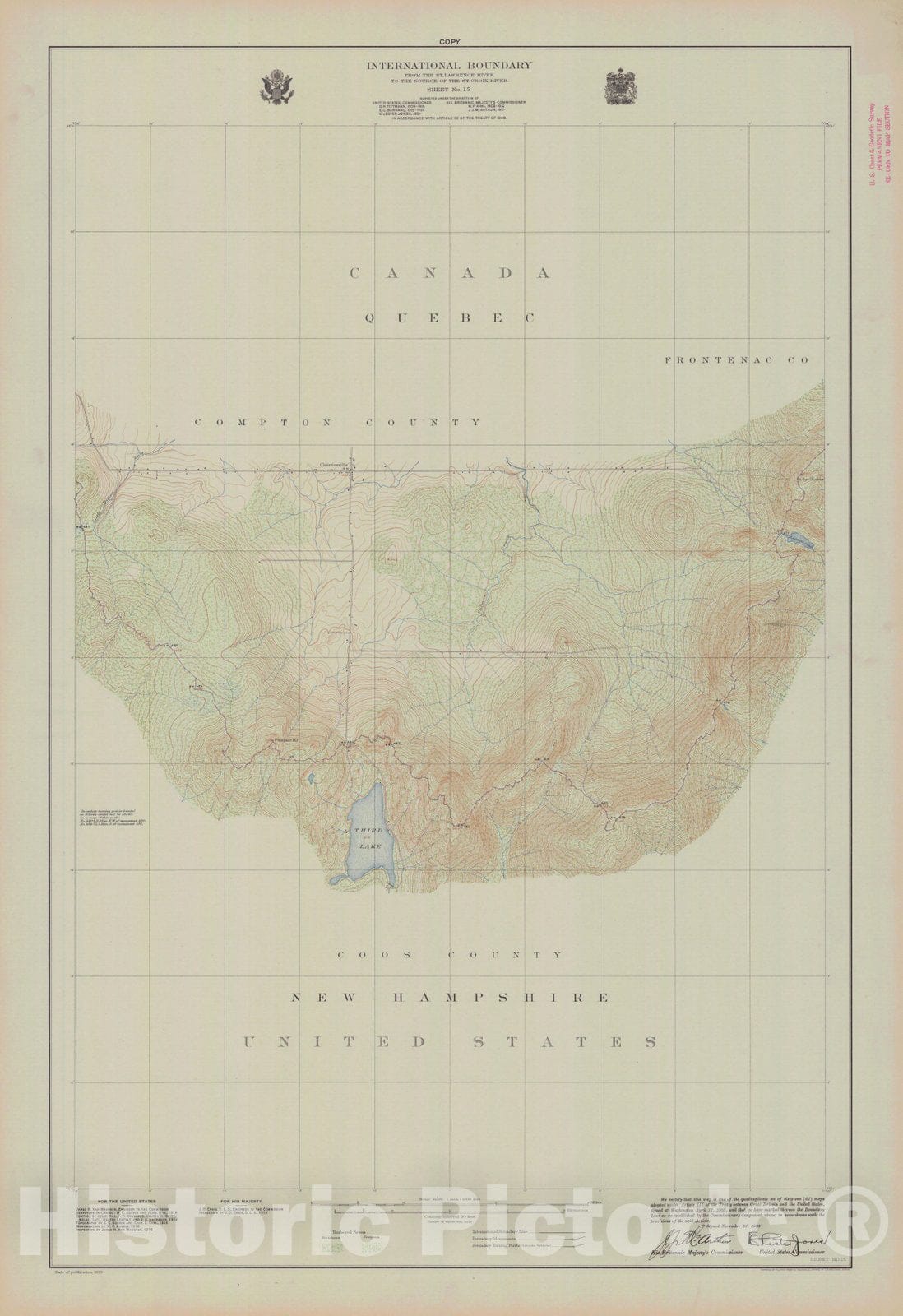 Historic Nautical Map - International Boundary, From The St. Lawrence River To The Source Of The St. Croix River Sheet No. 15, NH, 1923 NOAA Topographic - Vintage Wall Art