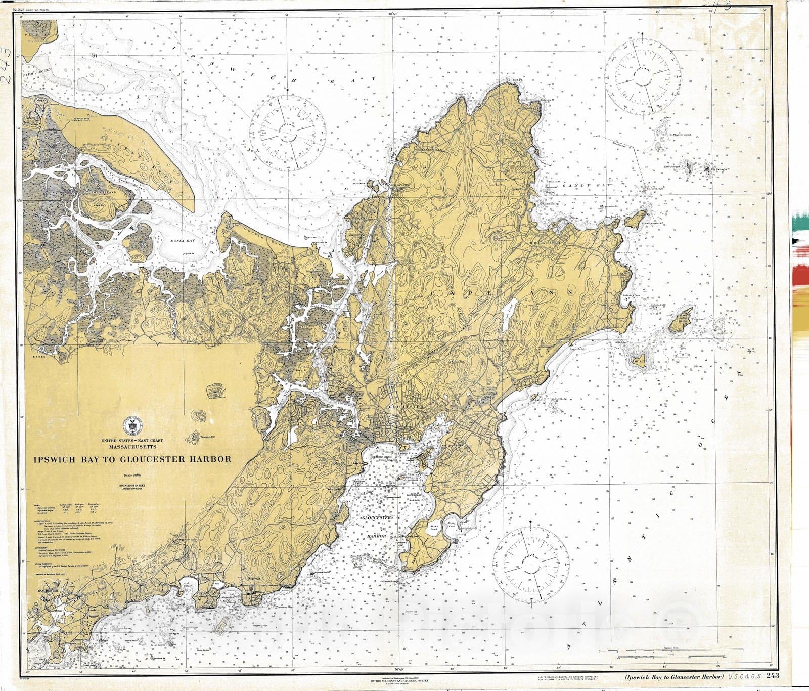 Historic Nautical Map - Ipswich Bay To Gloucester Harbor, 1920 NOAA Chart - Vintage Wall Art