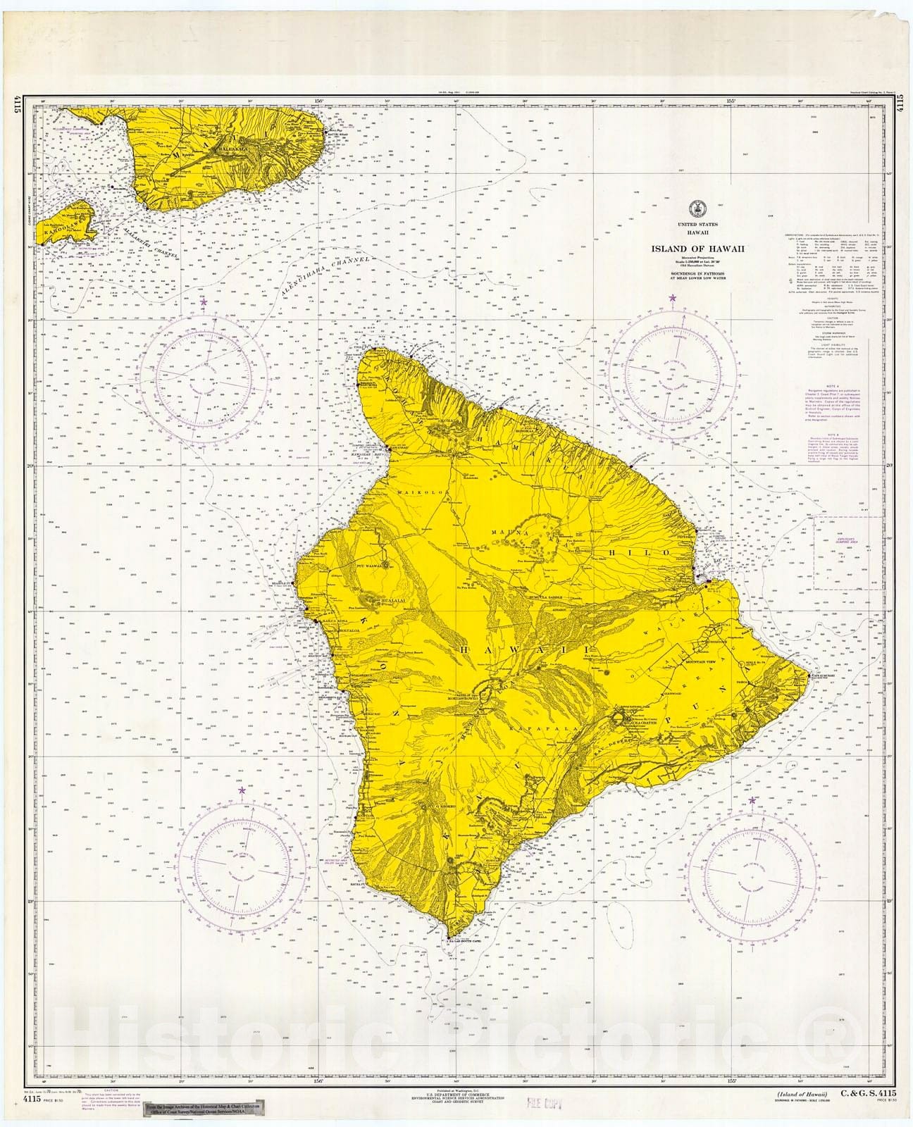 Historic Nautical Map - Island Of Hawaii, 1970 NOAA Chart - Hawaii (HI) - Vintage Wall Art