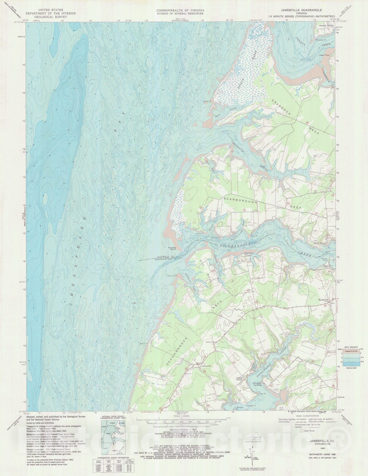 Historic Nautical Map - Jamesville, VA, 1968 NOAA Topographic Bathymetric Historic Nautical Map - Vintage Wall Art