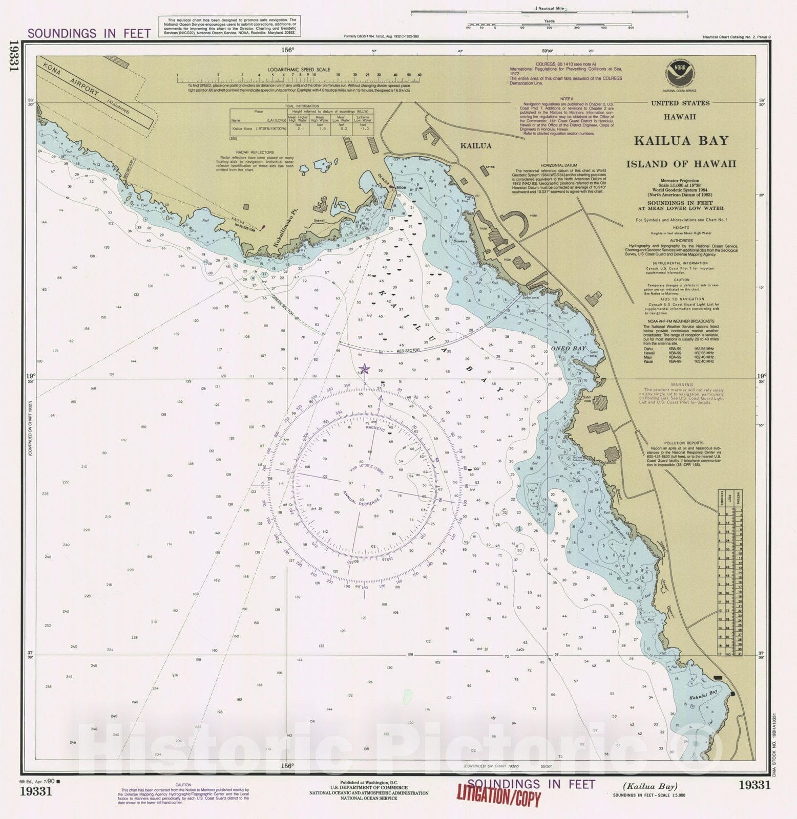 Historic Nautical Map - Kailua Bay, HI, 1990 NOAA Chart - Vintage Wall Art