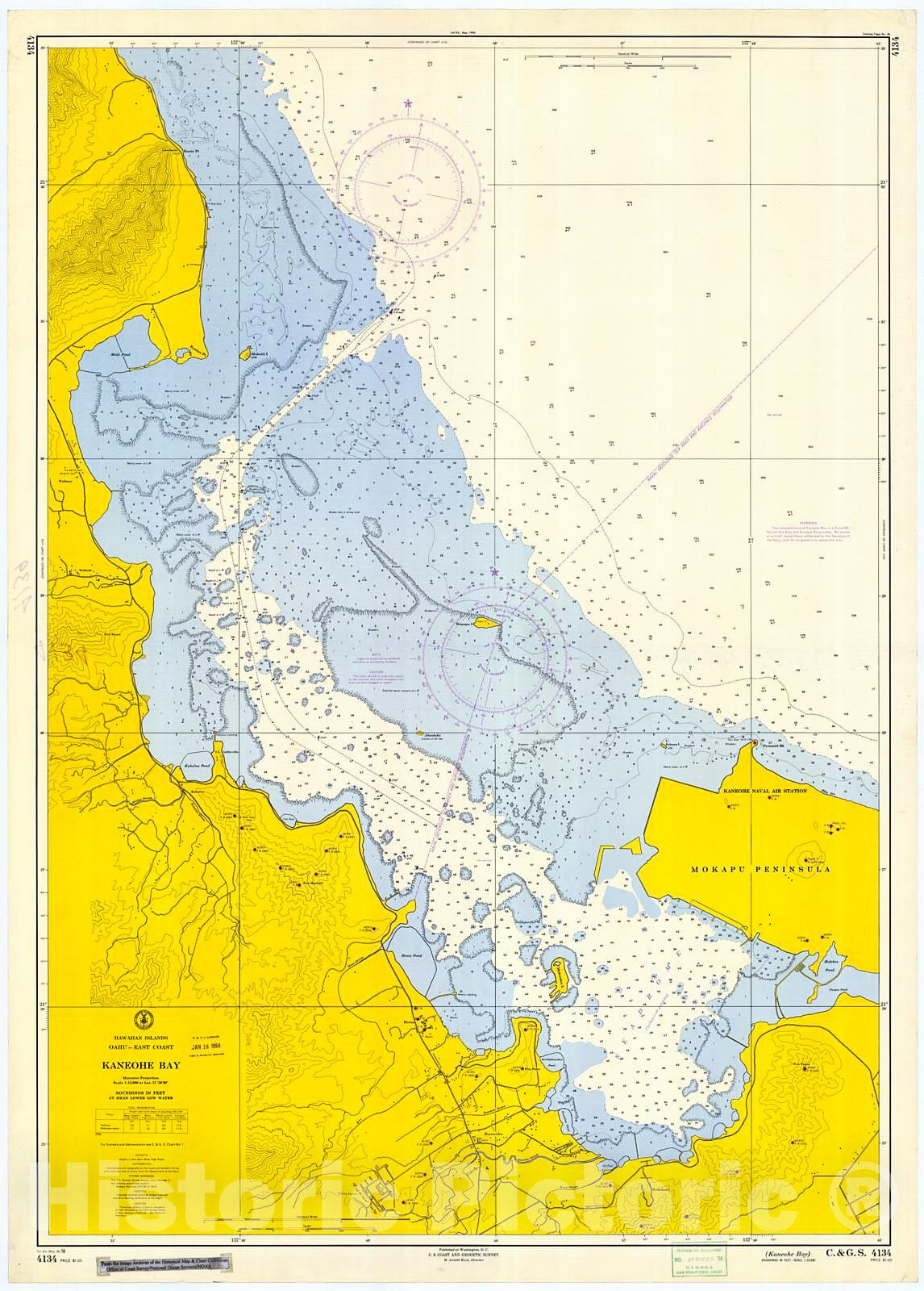 Historic Nautical Map - Kaneohe Bay, 1958 NOAA Chart - Hawaii (HI) - Vintage Wall Art
