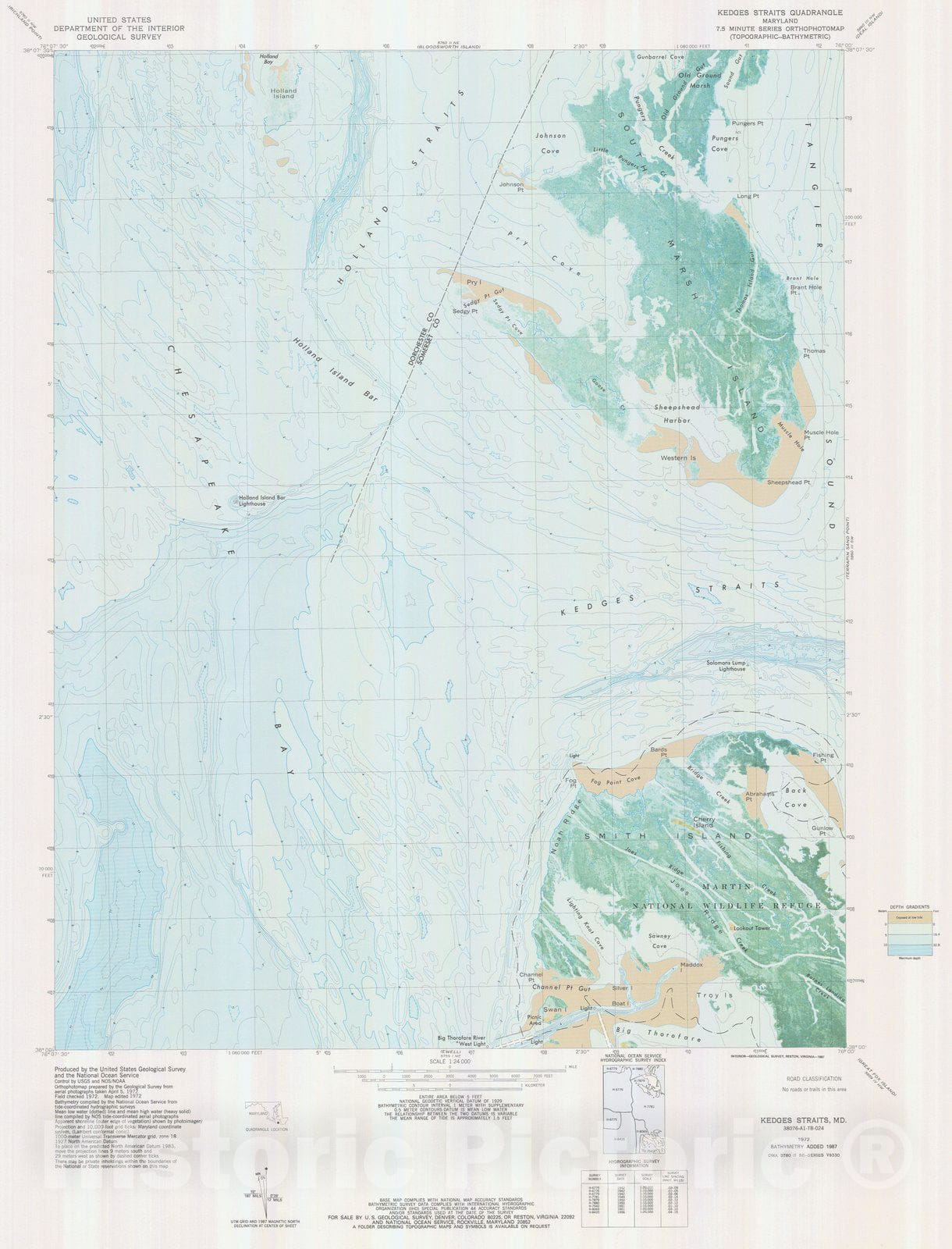 Historic Nautical Map - Kedges Straits, MD, 1972 NOAA Topographic Bathymetric Historic Nautical Map - Vintage Wall Art