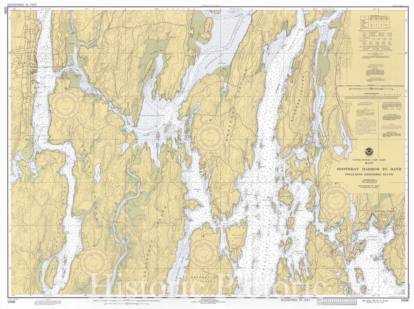 Historical Boothbay Harbor To Bath | 31in x 24in 1981 Nautical Chart | ME Vintage Map | Fine Art Reproduction Print