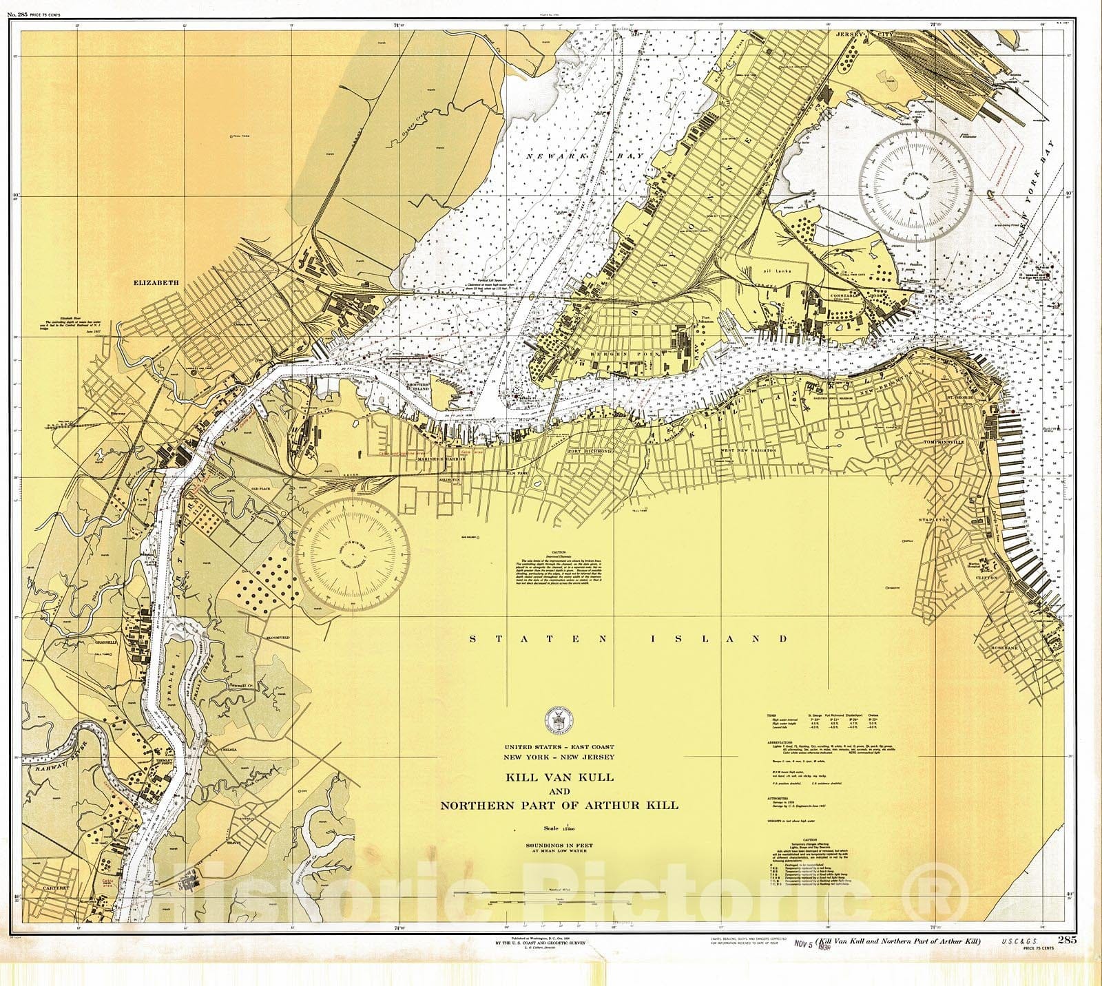 • .Historic Nautical Map - Kill Van Kull And Northern Part Of Arthur Kill, 1938 NOAA Chart - Vintage Wall Art