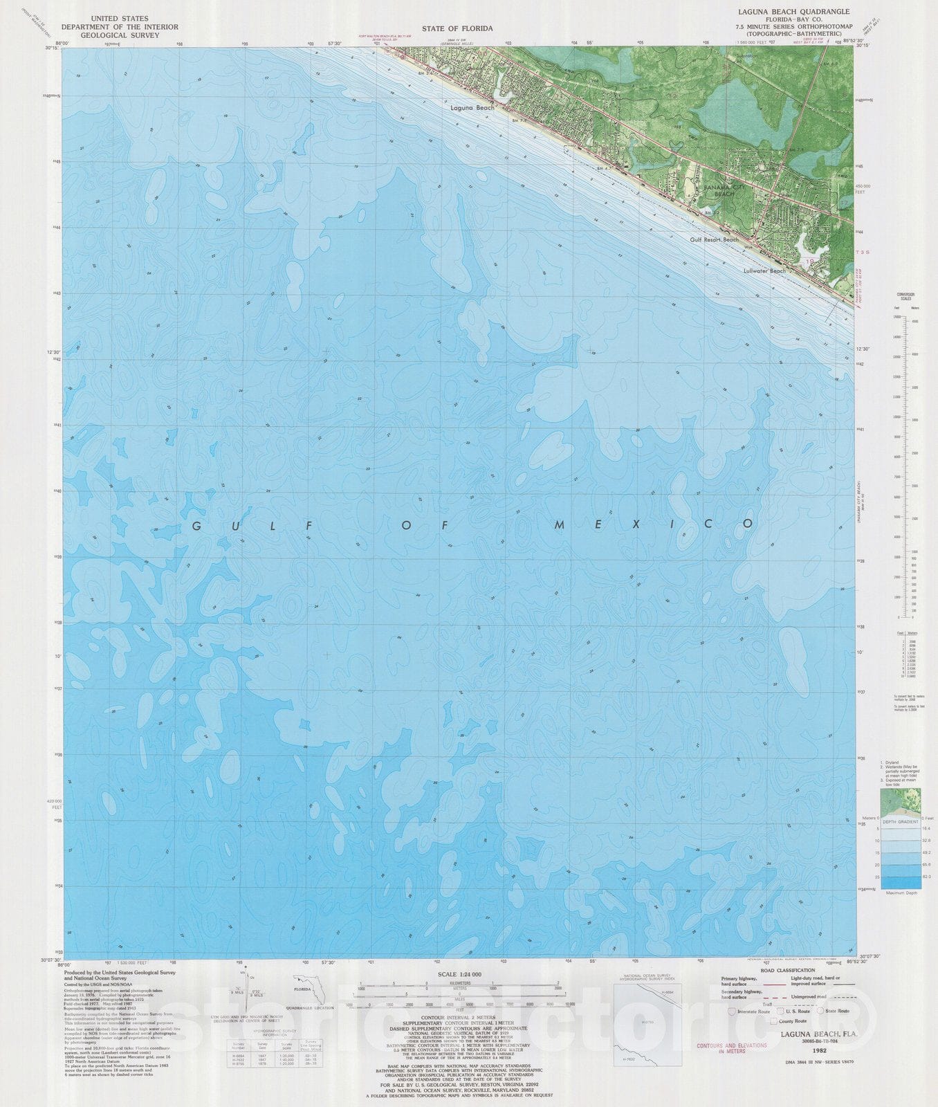 Historic Nautical Map - Laguna Beach, FL, 1982 NOAA Topographic Bathymetric Historic Nautical Map - Vintage Wall Art