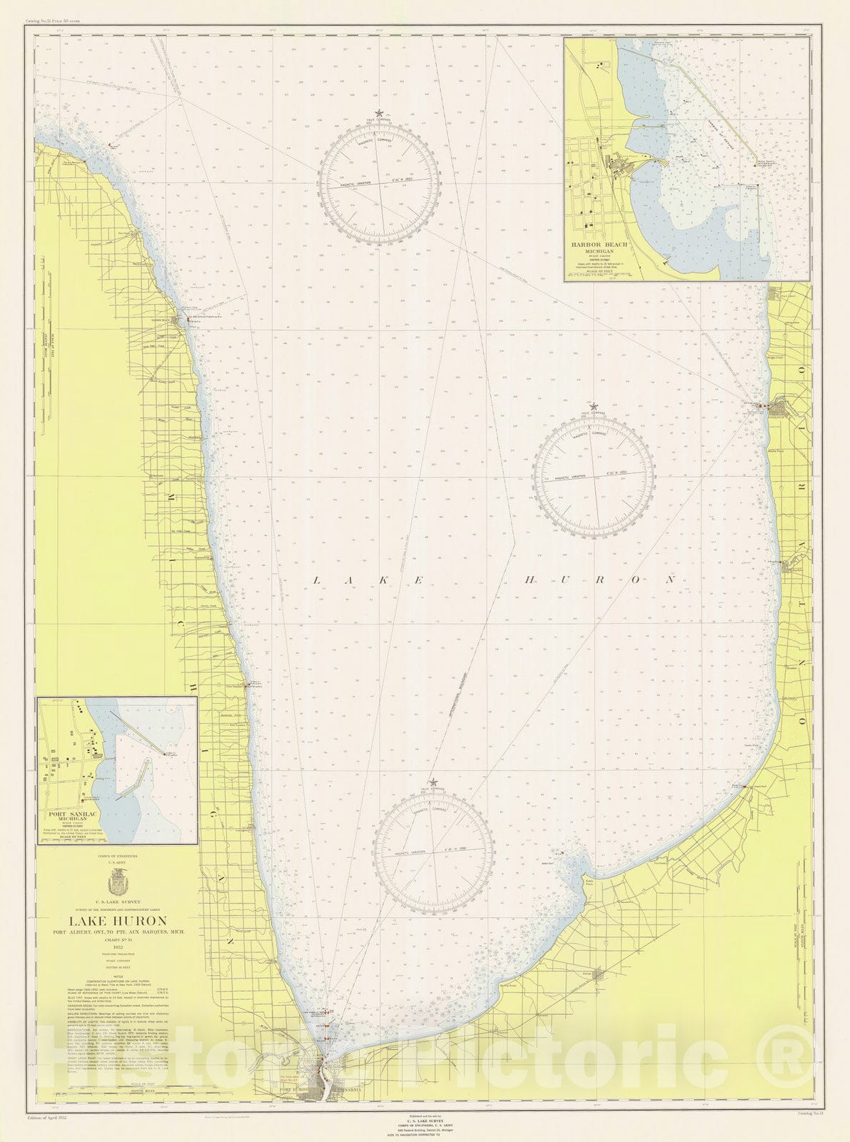 Historic Nautical Map - Lake Huron Port Albert Ont To Pte Aux Barques Mich, 1952 NOAA Chart - Vintage Wall Art