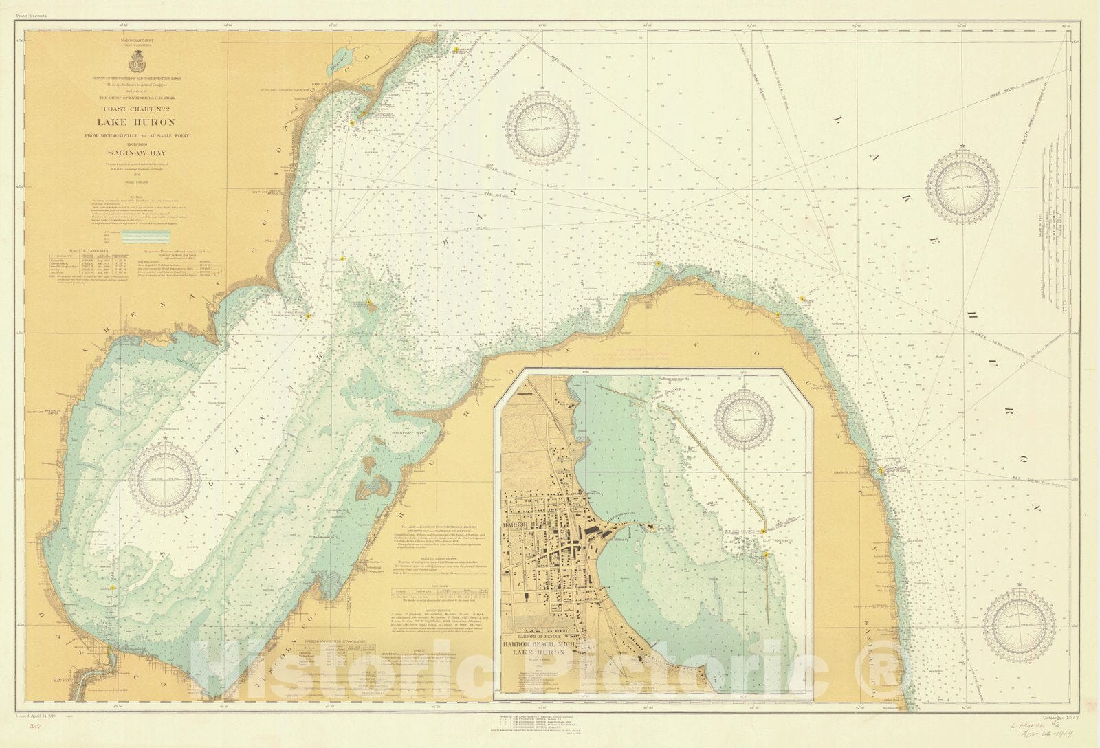 Historic Nautical Map - Lake Huron From Ricmondville To Au Sable Point Including Saginaw Bay, 1919 NOAA Chart - Vintage Wall Art