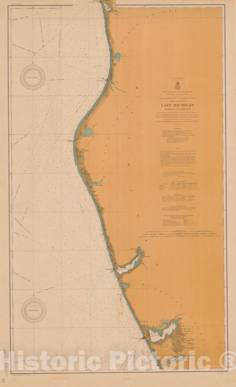 Historic Nautical Map - Lake Michigan, 1906 NOAA Chart - Vintage Wall Art