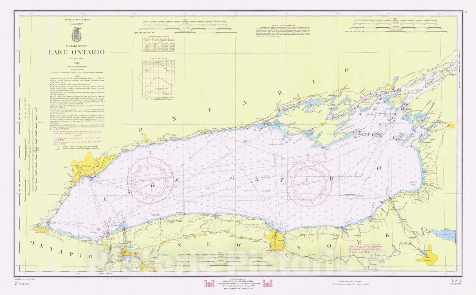 Historic Nautical Map - Lake Ontario General, 1968 NOAA Chart - Vintage Wall Art