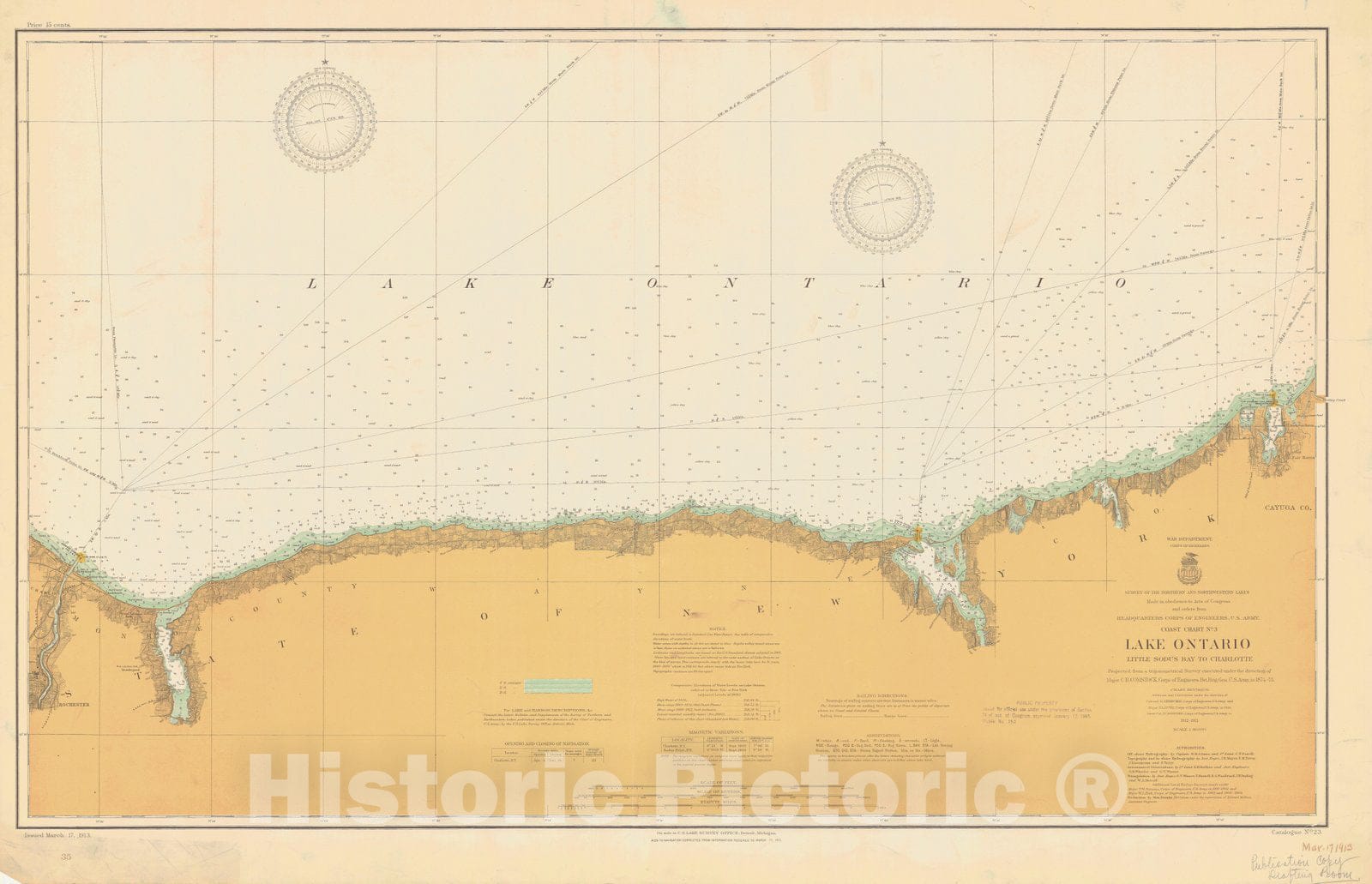 Historic Nautical Map - Lake Ontario Little Sodus Bay To Charlotte, 1913 NOAA Chart - Vintage Wall Art