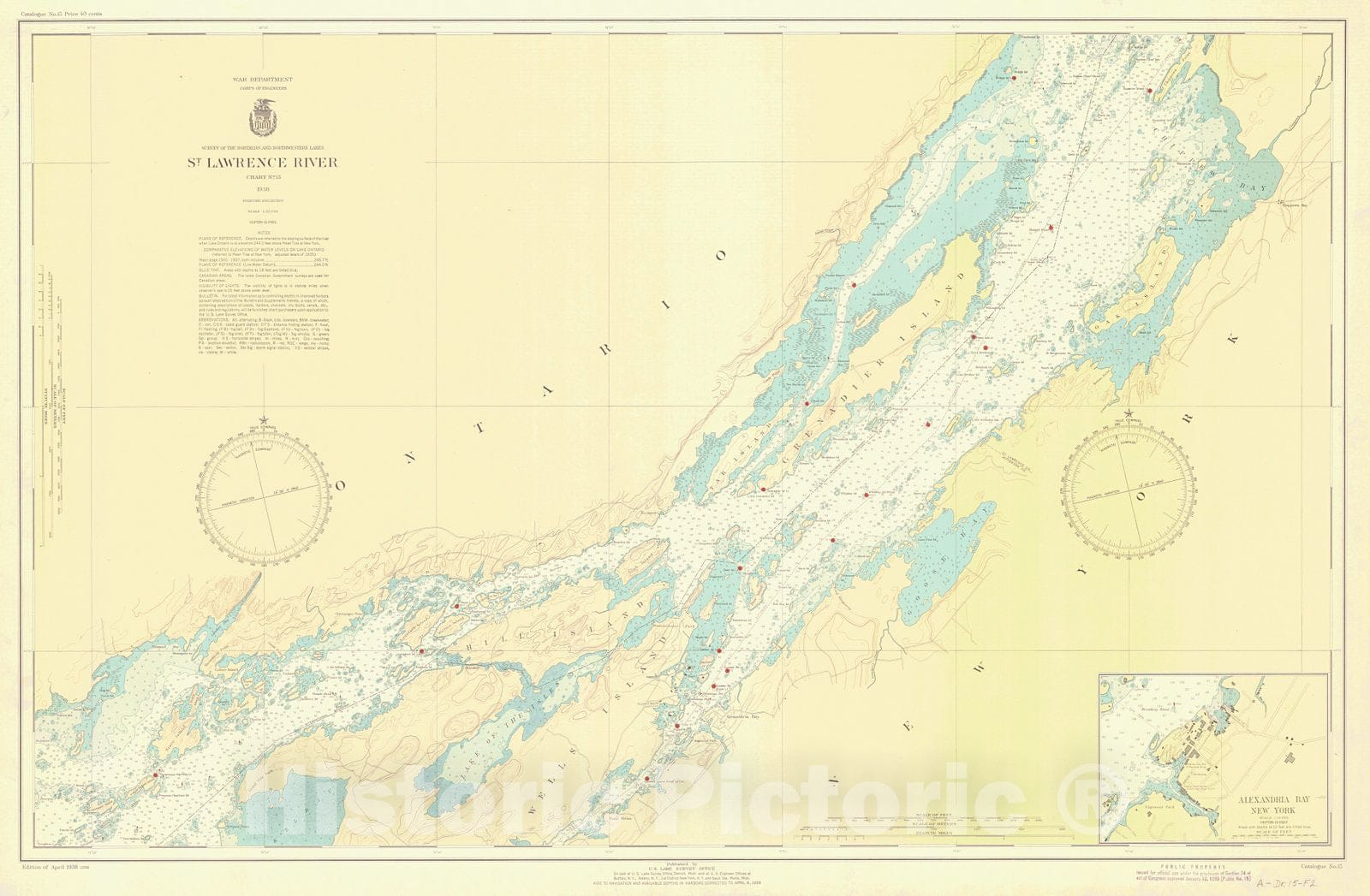 Historic Nautical Map - St. Lawrence River, 1938 NOAA Chart - Vintage Wall Art